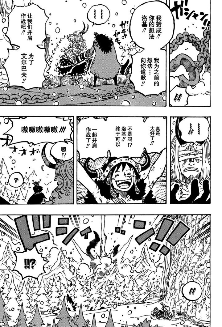 海尔丁和路飞等人还在冥界,索隆和山治也没有回去,他们正在听洛基王子讲述当年的真相。哈拉尔德国王被伊姆大人操控,他屠杀了一百多名士兵,最后被洛基王子斩杀,是洛基王子阻止哈拉尔德国王,这就是真相,贾巴也证明洛基王子没有说谎。