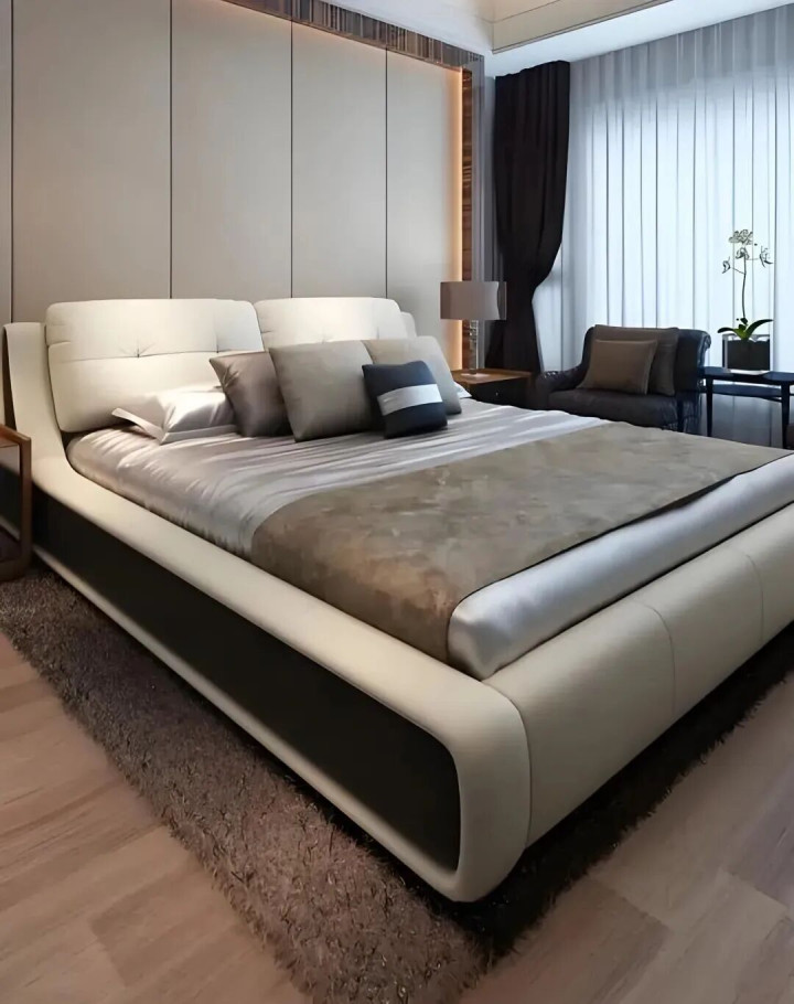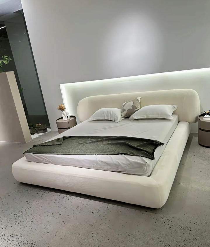 虽然有些软包床确实用实木做框架,但很多床款为了追求独特造型,比如设计上有太多弧度和曲线,实木的灵活性有限,所以很多床的内核都用了密度板。