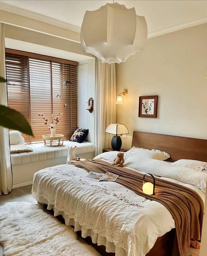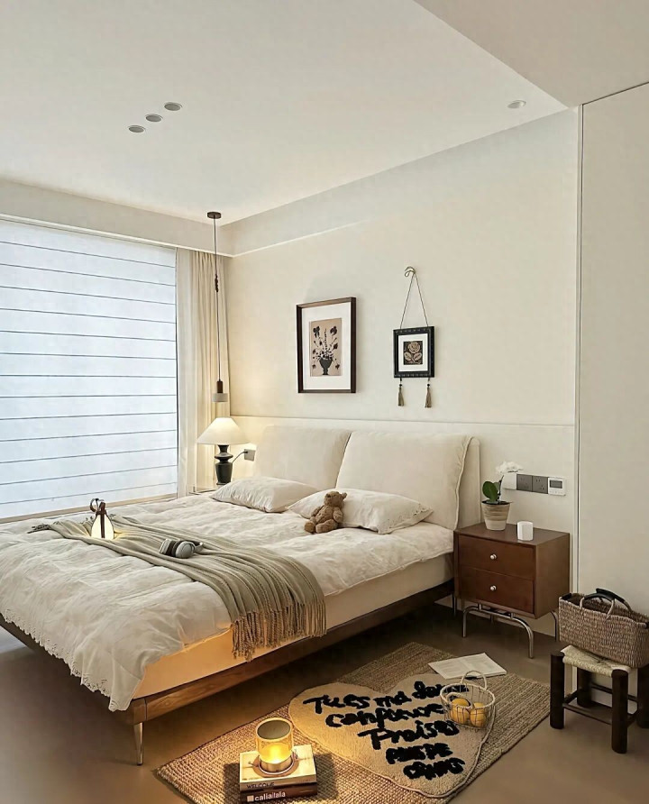 要说有品位的床,还是得选黑胡桃木或者樱桃木!黑胡桃木低调奢华,颜色古朴稳重;樱桃木则是干净清爽,暖色调质感十足,就像是卧室里的“治愈系暖男”。