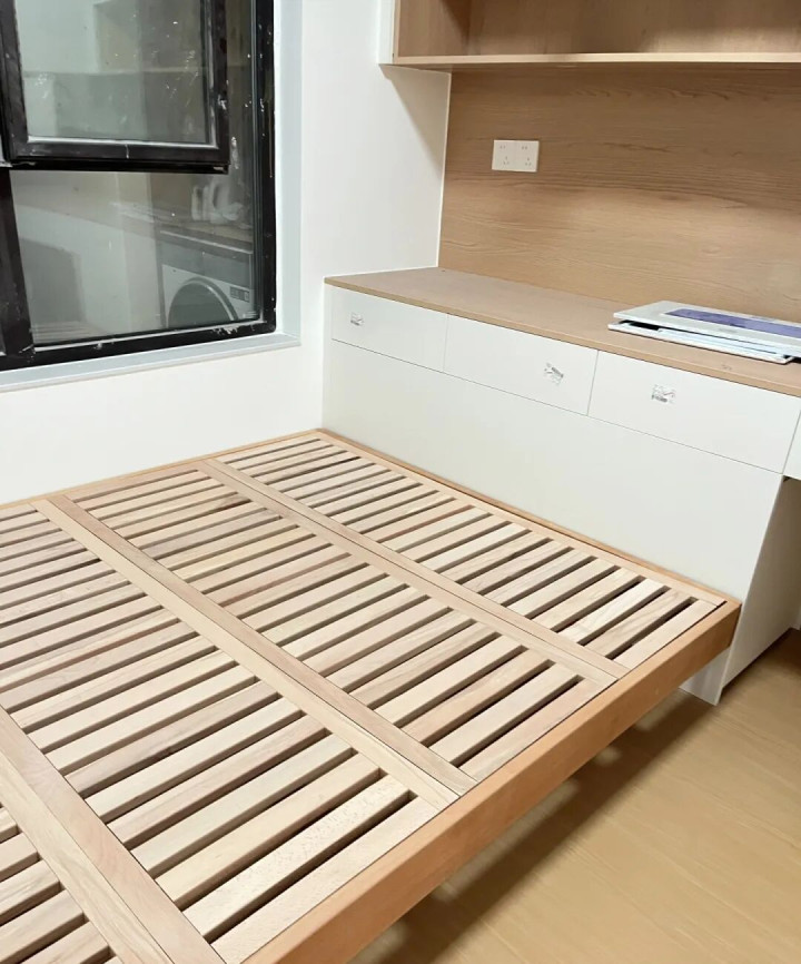 最后,选纯实木的排骨架是最佳选择,实木木条厚度最好超过1.5cm。配件角码也要选厚钢材的,这样支撑力才有保障,不然“躺得不安稳”可就尴尬了。