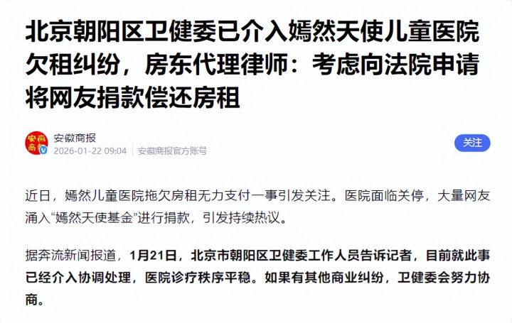 提出新思路,寻求协商解决:当卫健委介入协调,网友捐款已超2400万时,房东方提出了一个突破性的解决方案。其律师表示,将考虑向法院申请,把网友捐赠的部分款项用于抵扣房租。理由是医院的正常运营离不开场地,支付房租不属于挪用善款。同时,律师释放出明确的和解信号,称“矛盾正在化解”,期待双方能坐下协商,圆满解决此事,让大家都能安心。