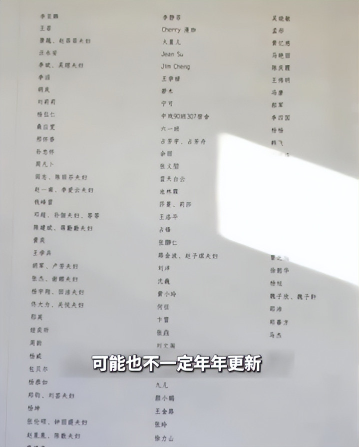 除了张杰谢娜夫妇的名字被写在墙上外,还有胡军卢芳夫妇、陈建斌蒋勤勤夫妇、邓超孙俪夫妇、佟大为关悦夫妇、张伦硕钟丽缇夫妇等等明星都在内。