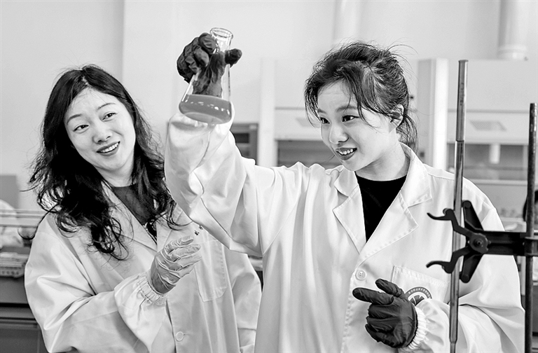 浙江金华职业技术大学,老师带着学生进行自然水体中溶解氧的测定实验。新华社发