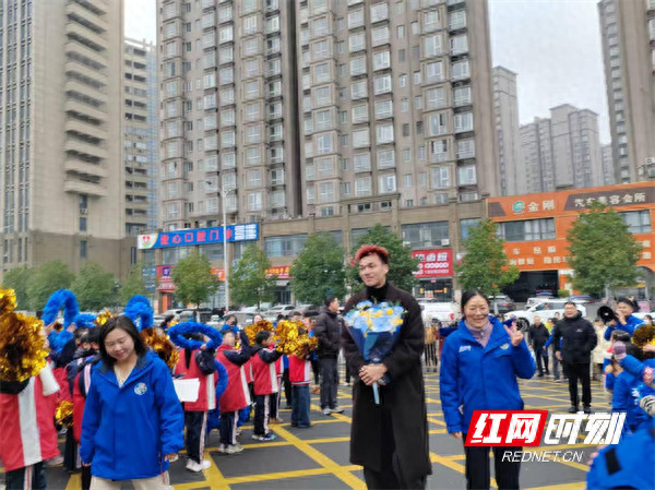 活动伊始,七里店小学校门,学生们手持鲜花与自制标语,以最热烈的掌声迎接心中的足球偶像。作为从永州零陵走出的足球运动员,谷文杰带着湘超冠军奖杯亮相现场,瞬间点燃全场热情。