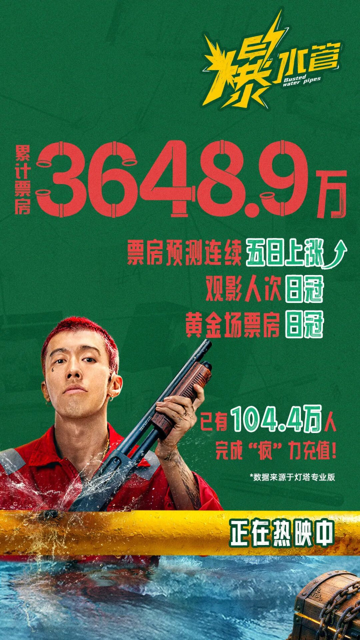 △ 《爆水管》上映五日累计票房突破3648万,票房预测持续上涨