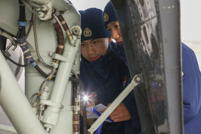 地勤官兵穿梭于机翼下