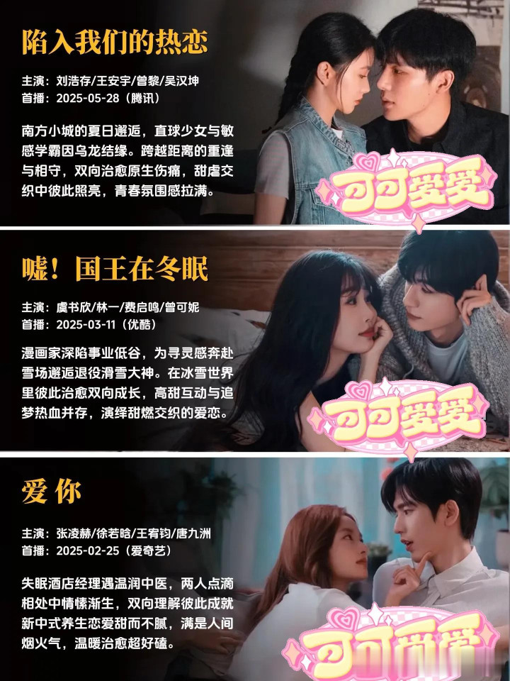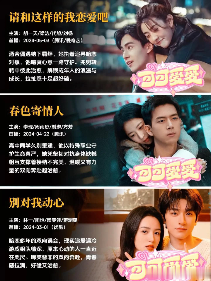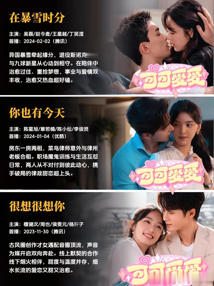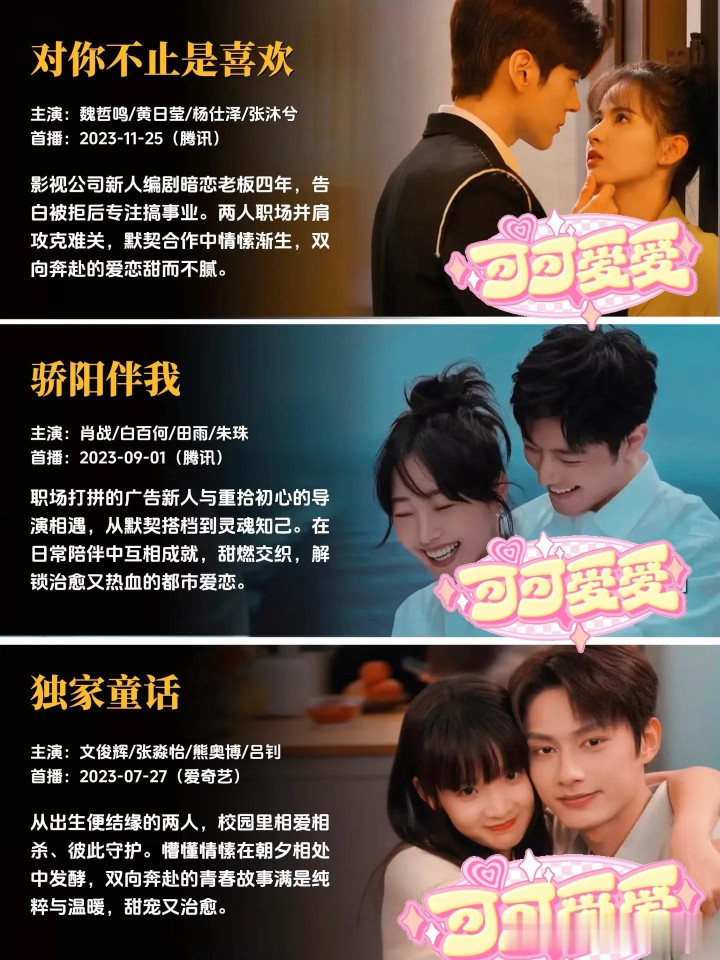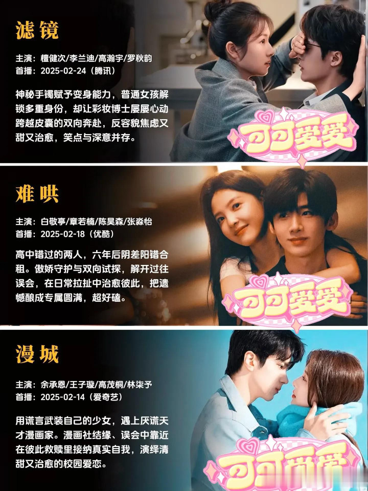 每一部作品,都是幕后主创团队倾注心血的成果,都有着独属于自己的故事温度与情感内核。有的故事写尽了双向奔赴的坚定与赤诚,让人忍不住为纯粹的感情动容;有的故事聚焦职场与爱情的平衡共生,展现独立个体的清醒情感抉择;有的故事满是青春的青涩与美好,精准还原最动人的年少心动瞬间;还有的故事以轻喜奇幻的温暖基调,带来轻松治愈的情感体验,不同的叙事风格,同样的创作真诚,每一部都值得静下心来,好好感受其中的美好。