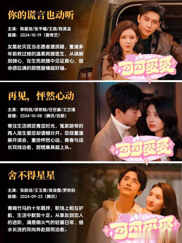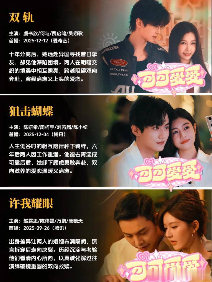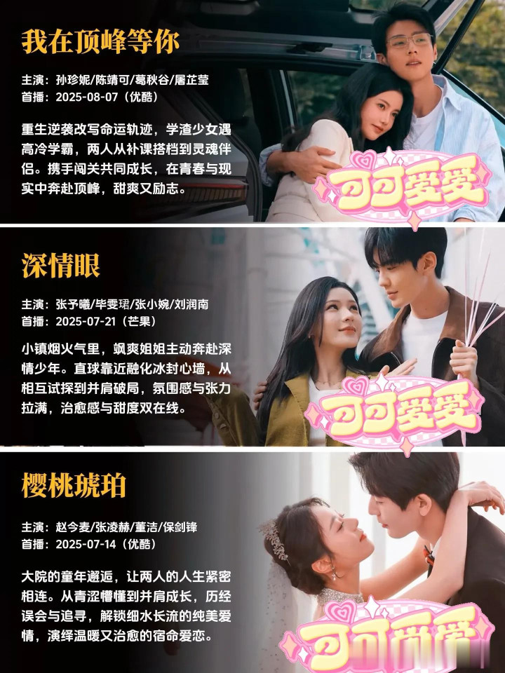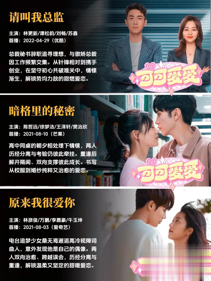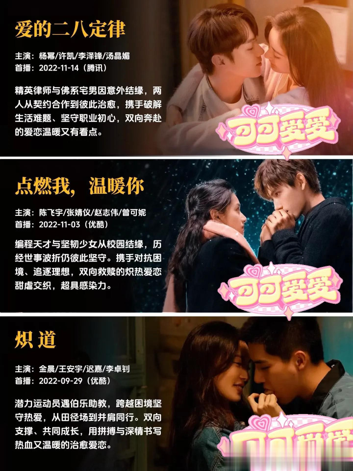每一部作品,都是幕后主创团队倾注心血的成果,都有着独属于自己的故事温度与情感内核。有的故事写尽了双向奔赴的坚定与赤诚,让人忍不住为纯粹的感情动容;有的故事聚焦职场与爱情的平衡共生,展现独立个体的清醒情感抉择;有的故事满是青春的青涩与美好,精准还原最动人的年少心动瞬间;还有的故事以轻喜奇幻的温暖基调,带来轻松治愈的情感体验,不同的叙事风格,同样的创作真诚,每一部都值得静下心来,好好感受其中的美好。