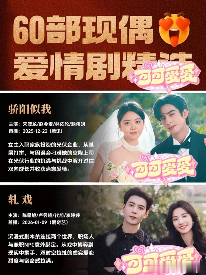 这份60部现偶爱情剧的完整整理,是我带着对影视内容的热爱,逐部梳理、精心编撰的干货分享,全程摒弃模板化创作与低质口水化表达,注入真实的创作情感与专属信息增量,只为给喜爱现偶剧的读者带来有价值、有温度的内容。如果这份片单能让你找到心仪的故事,收获一份观剧的美好期待,不妨点赞收藏本文,方便日后随时翻看查阅。也欢迎大家在评论区畅所欲言,分享你心中最有感触的那部现偶作品,聊聊那些让你心底泛起暖意的剧情片段,一起交流属于现偶剧的美好与温柔,碰撞更多关于影视故事的共鸣。