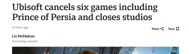 [环球网科技综合报道]1月23日消息,据BBC报道,育碧取消了六款电子游戏的开发计划,其中包括备受期待的《波斯王子:时之砂》重制版,这是其运营“重大调整”的一部分。