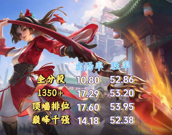 出场率接近10%,胜率长期在52%-53%之间,换成孙悟空和李白,估计玩家已经群起而攻之,不削不快了。