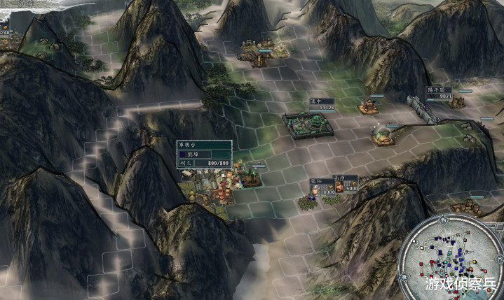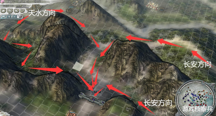 这个地形是参考了三国诸葛七出祁山的背景,汉中就像一把锁,牢牢锁住北方进入益州的道路。天水、长安各有三条路线通往汉中,加上东面上庸一条路,汉中锁住了七条路。前期电脑势力没有开发【难所行军】,他们不会选择栈道,剩下的四条路全要通过阳平关,所以双方会不停攻击阳平关,尤其西北势力更甚。