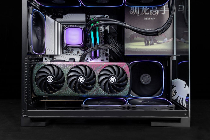 显卡采用时尚的撞色设计,正面特别做了珠光变彩处理,使不同角度呈现不同的色彩。散热系统采用了升级的冰芯2.0散热系统,确保GPU在长时间高负载下保持低温稳定运行。同时,该显卡还配备了压铸合金背板和坚固的金属中框,进一步提高显卡的整体强度。