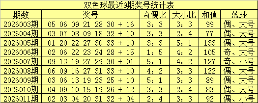 奇偶分析:最近30期奇偶比为9:21,最近10期奇偶比为2:8,最近5期奇偶比为1:4,本期蓝球看好偶数。