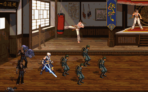 原型为街霸2里隆和肯的三件套技能,升龙拳,旋风腿,波动拳