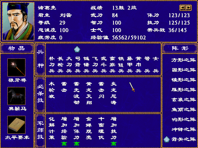 不过光武将猛,不够持久,想要5人灭10~15人的大城(因为一队最多上5人),合适的军师肯定必不可少。除了前期的增加经验外,恢复增加体力和技力的中高等级军师技也是神中之神。