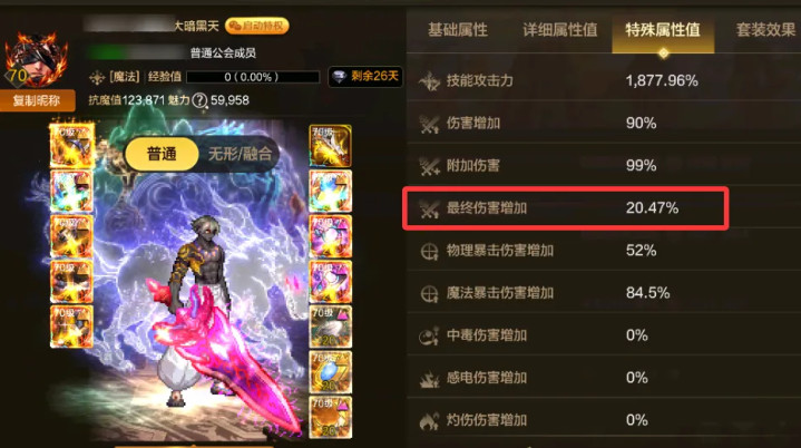 所以结论也就来了,如果大家在日常打团中看到有人拥有20.47%最终伤害,那么毋庸置疑,即便他抗魔值再低,那也一定就是当前版本最顶尖的大佬了!