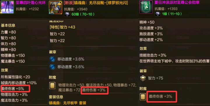 【1】至尊光环,+5%最终伤害、+3%双攻、+20全属强