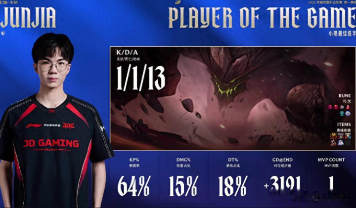 2026年《英雄联盟》电竞赛事已经迎来第二周,在赛季初的比赛中,墨菲特的热度居高不下。设计师在去年底加强了他的清野效率,目前他成为排位赛中非常强势的打野英雄,并且在比赛中也有极高的出场率。在LPL第一赛段的比赛中,墨菲特的出场率排名第四,被禁用了26次,但战绩是4胜6负,很难看到什么高光时刻,只有Junjia那局的表现尚可。